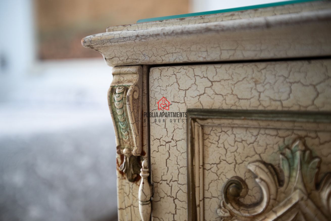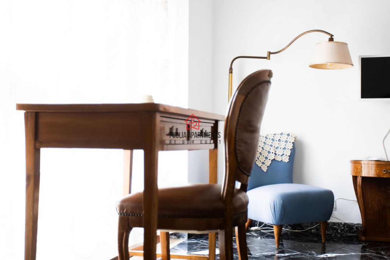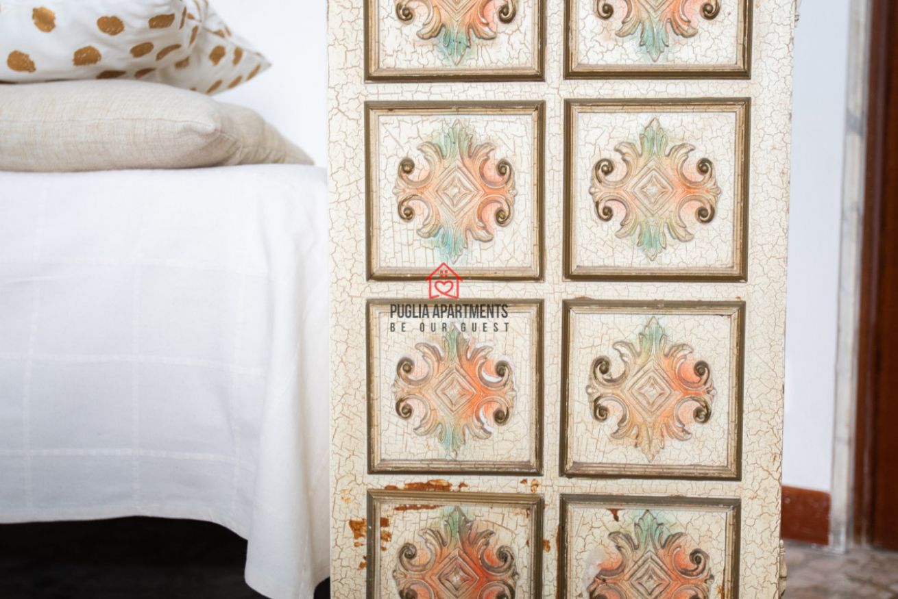 Piccolo appartamento dal profumo retro' con dettagli dal gusto combinato di antico e moderno composto da soggiorno con angolo cottura e comodo letto singolo, camera matrimoniale, ampio bagno privato con box doccia e balcone privato esterno