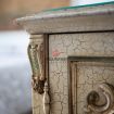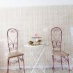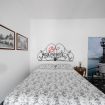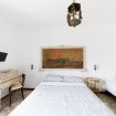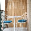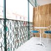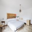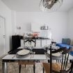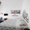 Kleines Apartment mit Retro-Duft mit Details mit einem kombinierten Geschmack aus Antike und Moderne, bestehend aus Wohnzimmer mit Kochnische und bequemem Einzelbett, Schlafzimmer mit Doppelbett, großem Badezimmer mit Dusche und privatem Außenbalkon